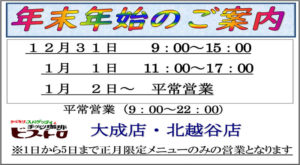 21年末年始_大成・北越用 | ビストロ埼玉県越谷市のビストロ