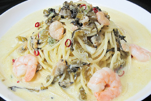 海老と高菜のワサビクリーム
